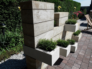 Donice z pustaków ogrodzeniowych możesz usytuować przy wejściu do domu jako obramowanie tarasu czy podjazdu. Ukwiecone donice z bloczków ogrodzeniowych urozmaicą każdą kompozycję ogrodu. A co, jeśli okazało się, że decyzja z postawieniem wielopoziomowej donicy okazała się nieprzemyślana? Donice z pustaków ogrodzeniowych w przeciwieństwie do donic murowanych możesz zawsze szybko rozebrać i przenieść w inne miejsce, co absolutnie nie wiąże się ze zniszczeniami w ogrodzie. Kolejnym plusem donic z pustaków ogrodzeniowych jest fakt, że dzięki ustawieniu ich na wysokości kilkudziesięciu centymetrów, sadzenie czy pielenie mogą wykonywać osoby starsze w pozycji siedzącej, bez pochylania się.