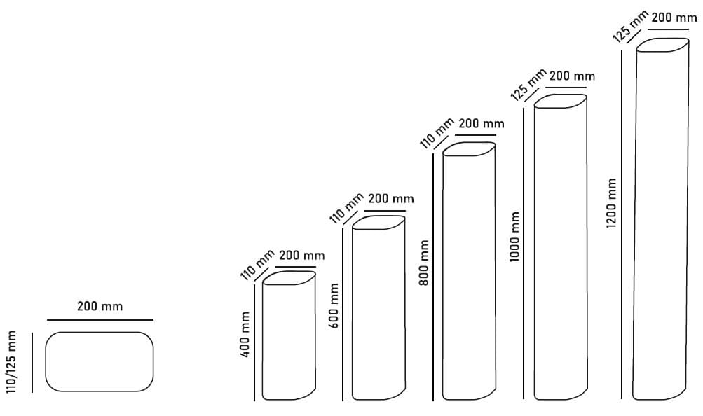 - galimos lygios struktūros, 40 ir 60 cm aukščio grafito ir rudos spalvos bei gruoblėtos struktūros 40, 60, 80, 100 ir 120 cm aukščio pilkos, grafito ir rudos spalvos tvorelės.