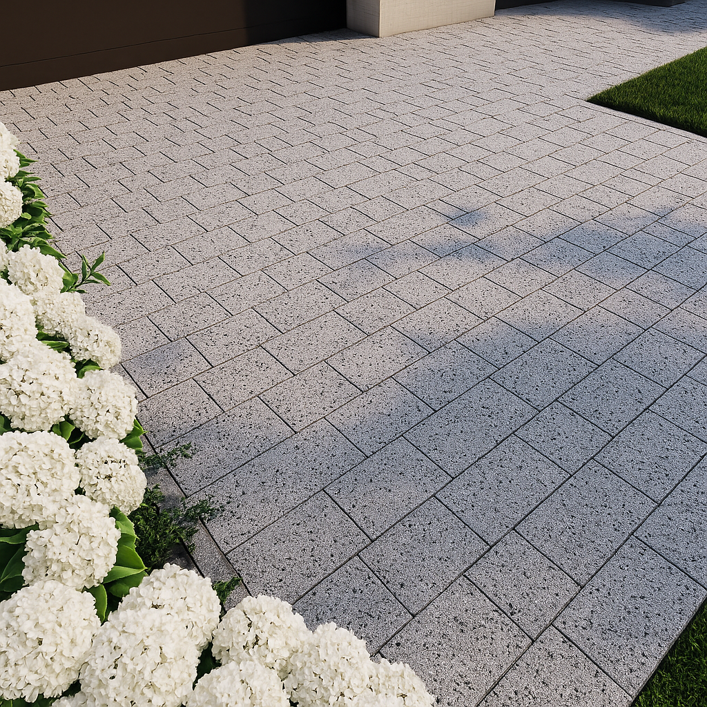 Kostka brukowa OLIMPIA z posypką ,o grubości 6 cm jest dostępna w trzech praktycznych wymiarach: 40x18 cm, 35x18 cm, 20x18, co pozwala na elastyczne dopasowanie do różnych projektów.To eleganckie rozwiązanie, które łączy klasyczną formę z nowoczesnym charakterem. Dzięki starannemu wykończeniu i subtelnej fakturze tworzy harmonijną, estetyczną nawierzchnię, idealnie pasującą do różnorodnych aranżacji przestrzeni.